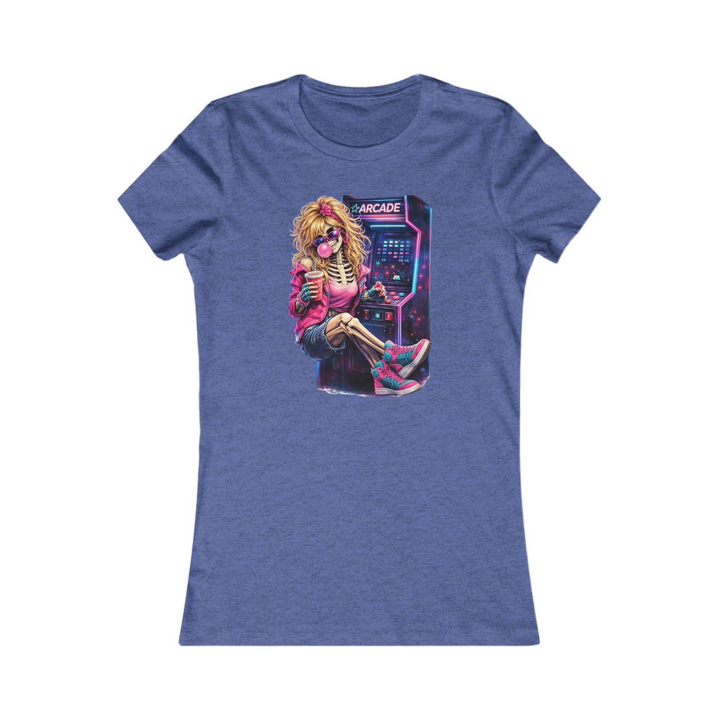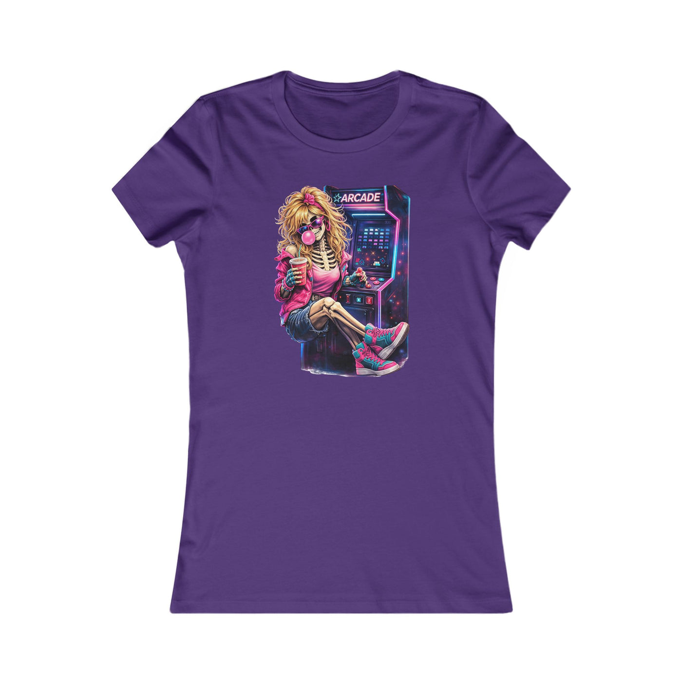 This slim-fit tee brings neon-soaked, retro-arcade vibes to everyday wear. The lightweight, soft cotton drapes slightly longer for a flattering silhouette while the vivid, synthwave-style graphic—featuring a cool, relaxed gamer lounging at an arcade cabinet—becomes the focal point of the outfit. Wear it for late-night game runs, casual hangouts, or when you want to channel 80s nostalgia with a modern edge. The tear-away label and ribbed collar keep comfort front and center, while side seams and shoulder tape help the shirt hold its shape wash after wash.